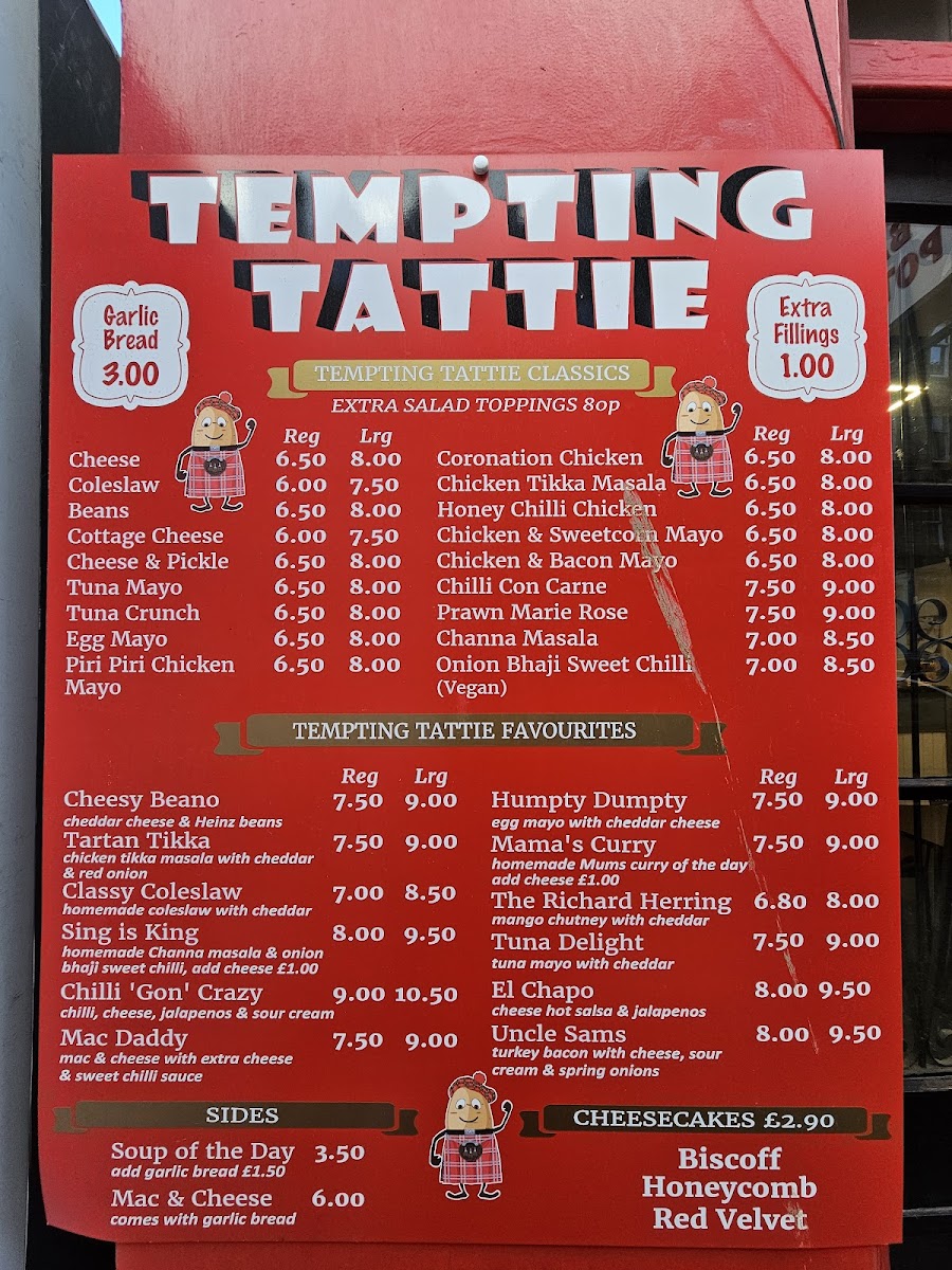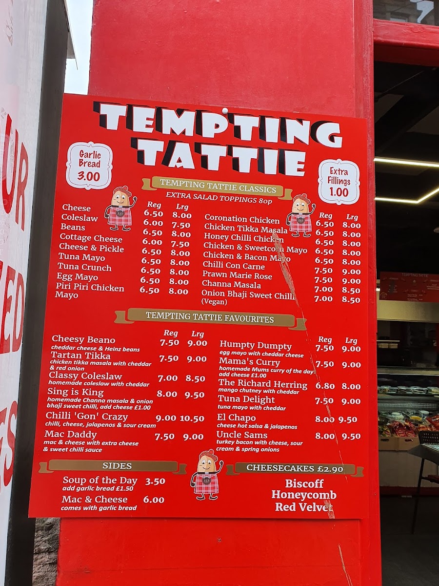 Welcome to Tempting Tattie, a delightful eatery nestled in the heart of Edinburgh at 18 Jeffrey St. This charming spot has mastered the art of the humble potato, elevating it into an array of scrumptious dishes. At the core of their menu is the signature "Tailor Yer Tattie," perfectly prepared and served with butter for just £7.00.
